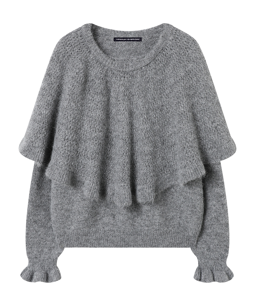 [미니멈 에브리데이]숄 케이프 소프트 프릴 긴팔 니트 (EB4KT038D)