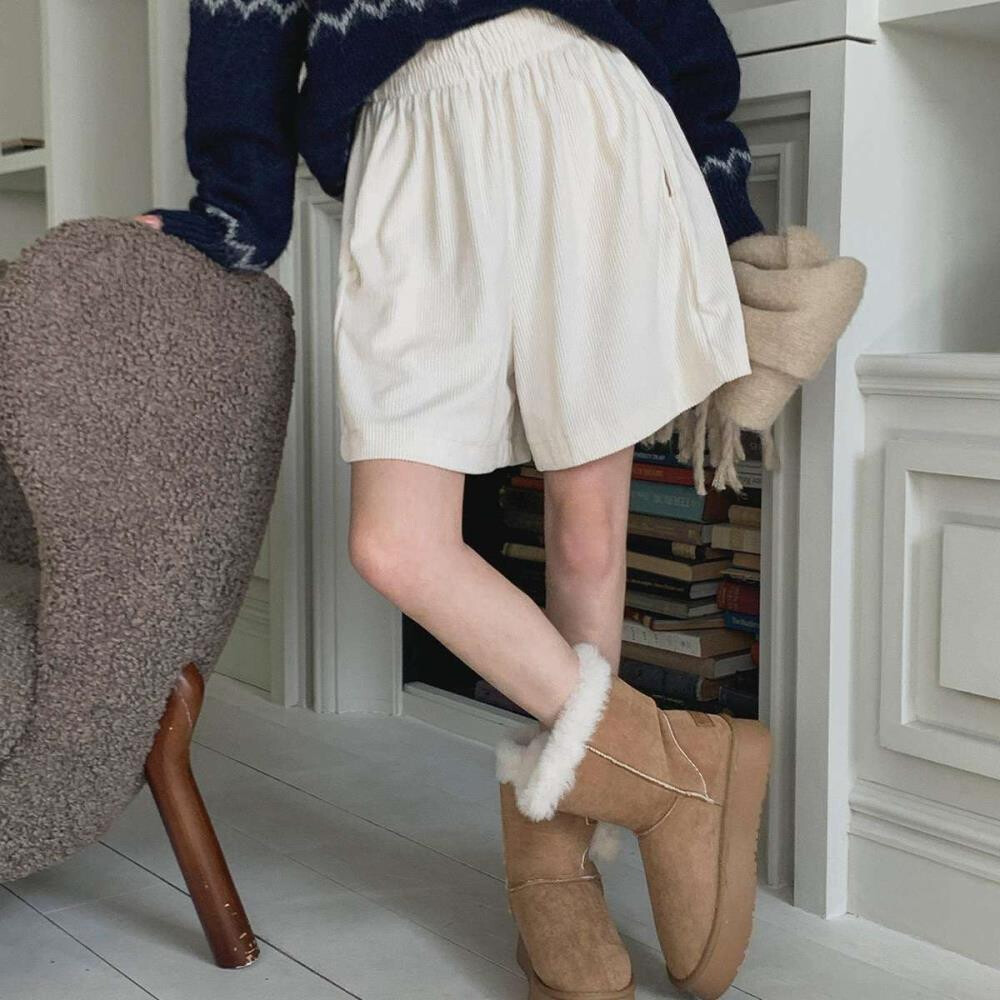 [옷자락] 여성용 와이드 핏 골덴 숏팬츠 밴딩 디자인