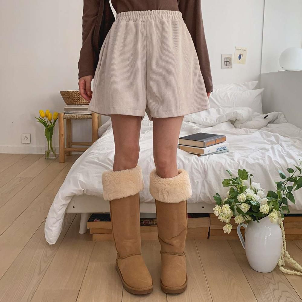 [옷자락] 여성 허리밴드 골덴 와이드 숏팬츠