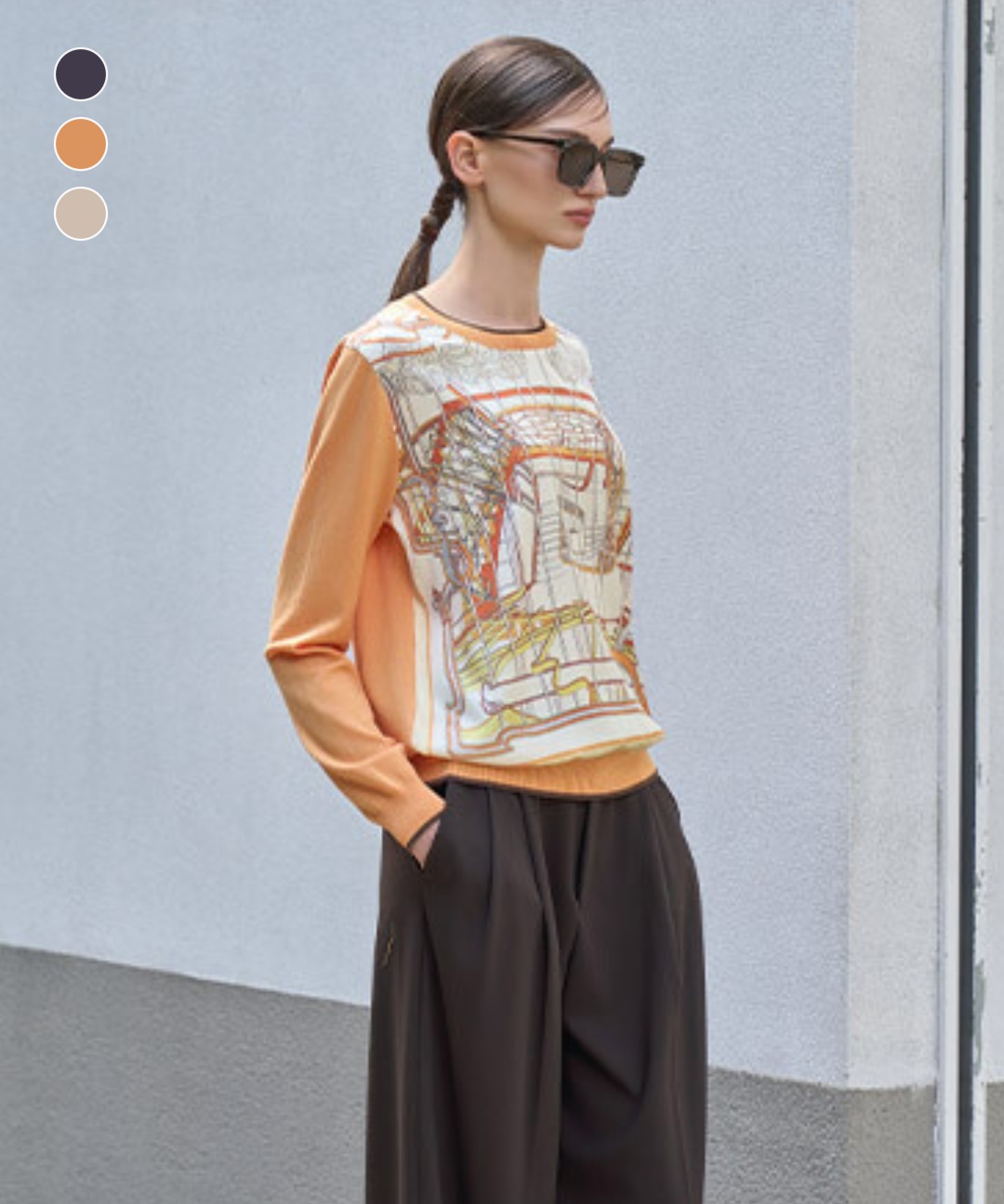 [1+1+1][크레송] 25FW 프린트 우븐 블록 니트 풀오버 3종세트