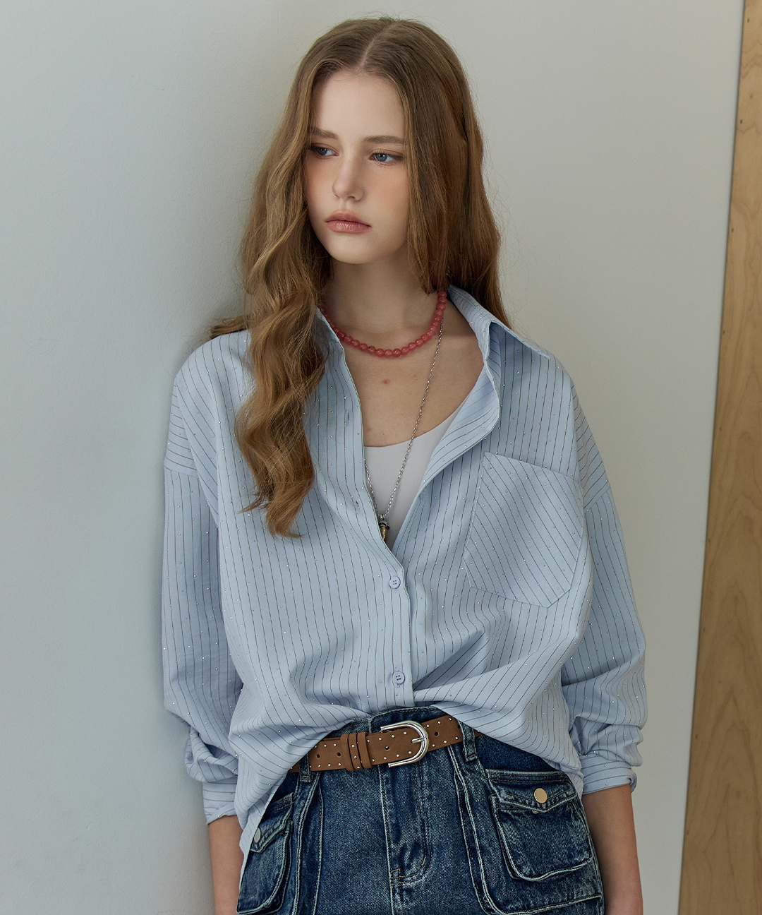 [마쟈] 미니 큐빅 포인트 루즈핏 스트라이프 셔츠