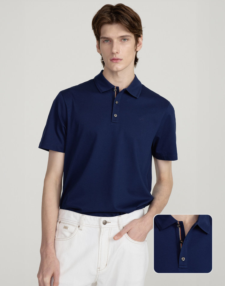 [25SS 닥스 남성]다크블루 삼색 TAPE 반팔 카라티_DMTS5B301B3