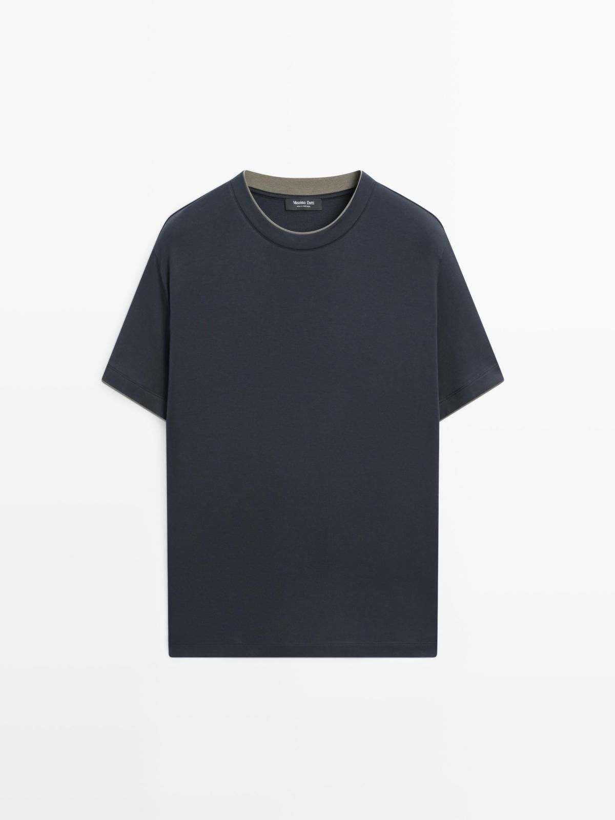 마시모두띠 코튼 반팔 티셔츠 크루넥 배색카라 0644/193 NAVY BLUE