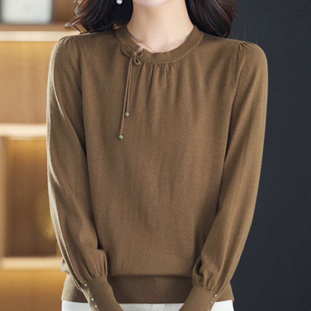 [나바바] NK3533 데일리 무지 라운드넥 리본 포인트 긴팔 니트티
