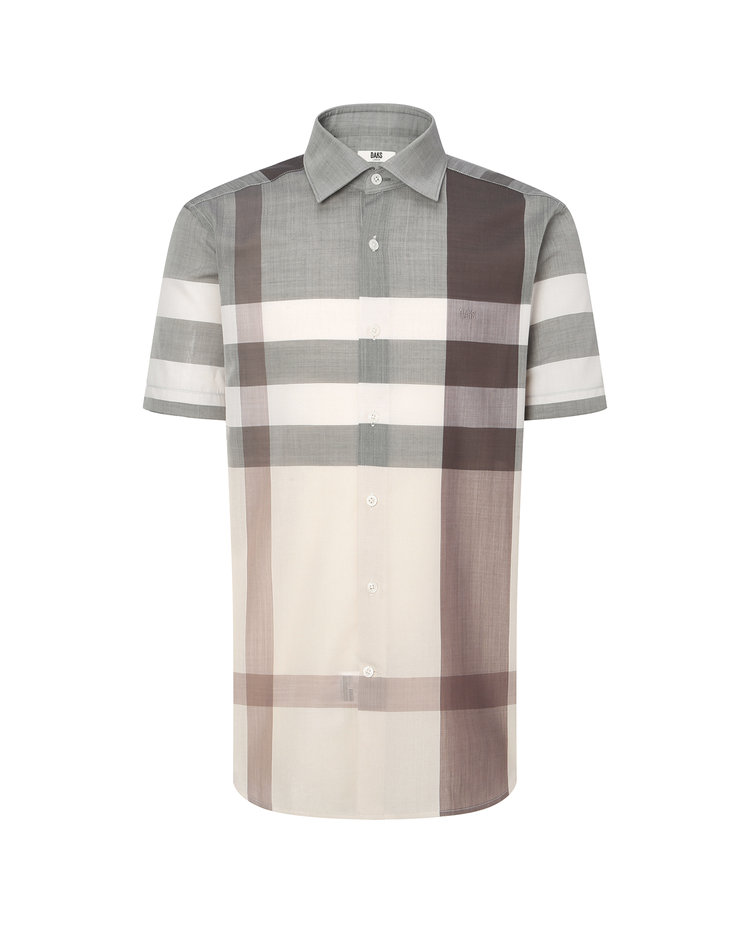 [25SS 닥스 남성]울 혼방 카키 체크 워셔블 반팔 셔츠_DMSH5BC12K2