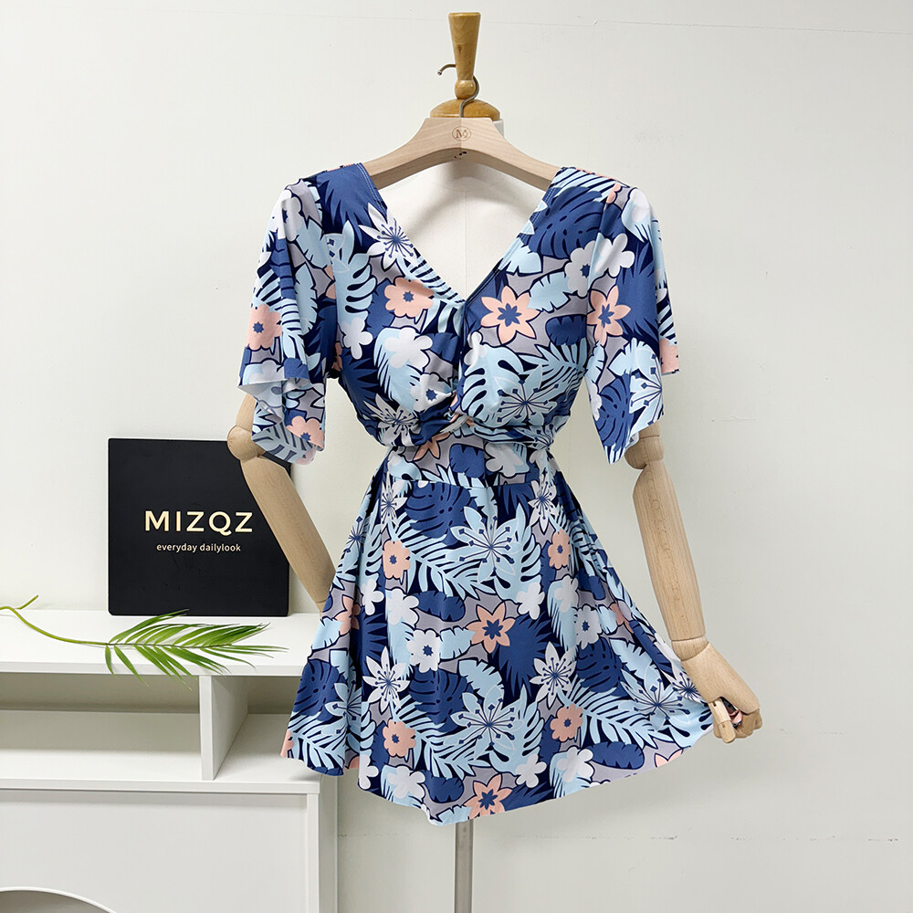[미즈큐즈] (66-77까지) 미시룩 엄마 빅사이즈 플라워 블루 브이