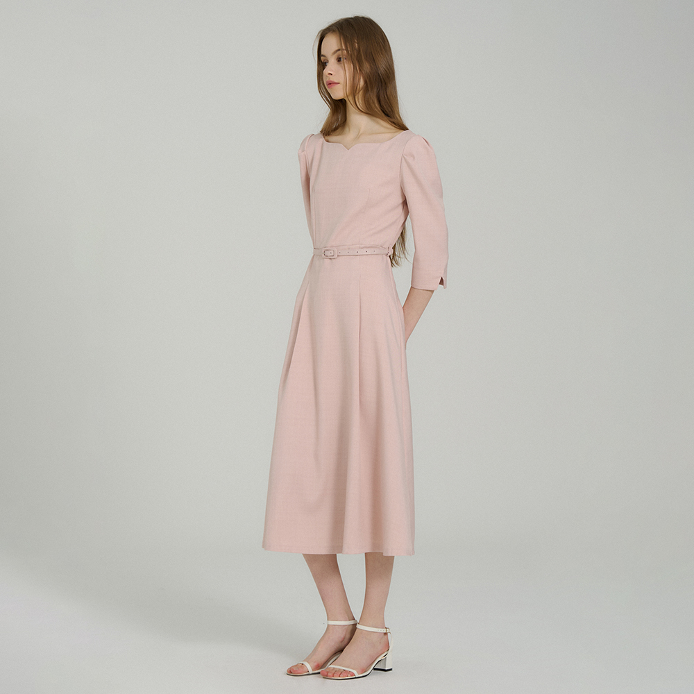 [ab.plus/신상] 페미닌 셔링 벨티드 플레어 원피스 (LSA5MO31A)