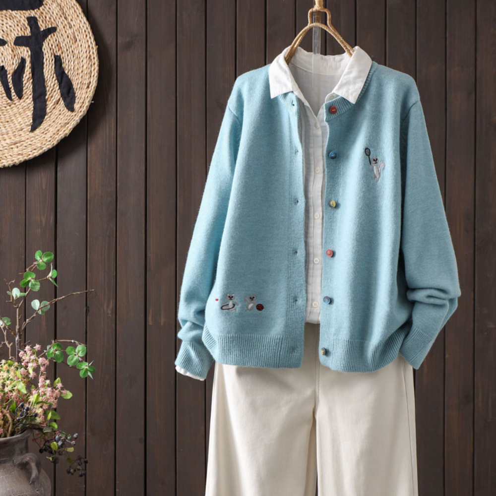 스쿼럴 자수 배색 버튼 가디건 C25DCD171