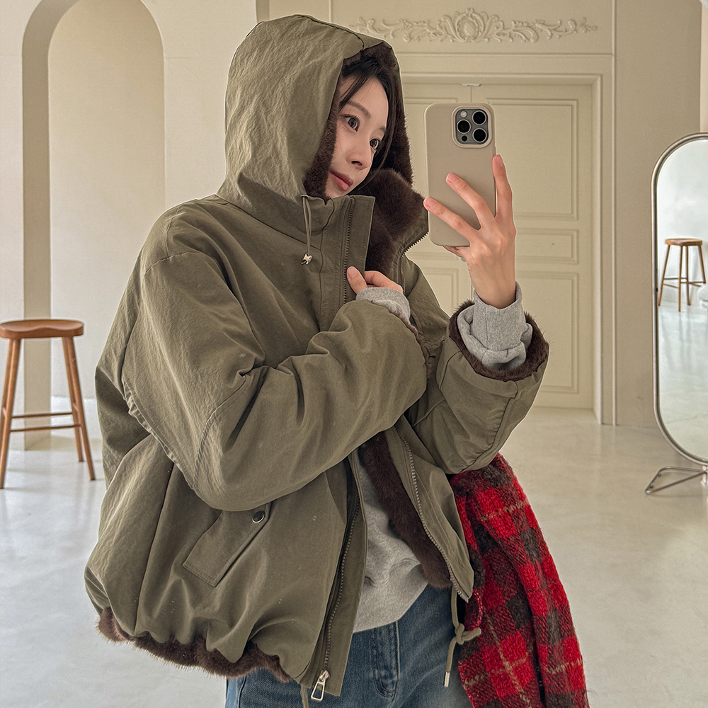 [캔마트] 리버시블 밍크퍼 후드 사파리 점퍼