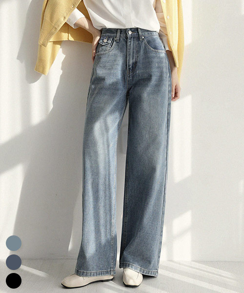 [딱맞진No.41] 포켓 디테일 워싱 와이드 데님팬츠_265049