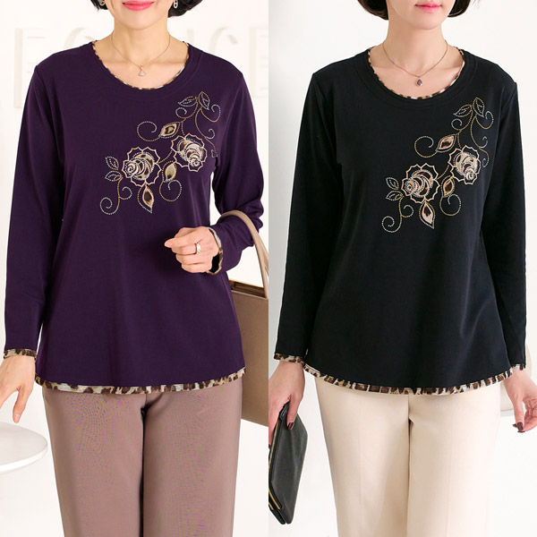 [엄마옷 로즈맘] 만정호피배색기모티셔츠