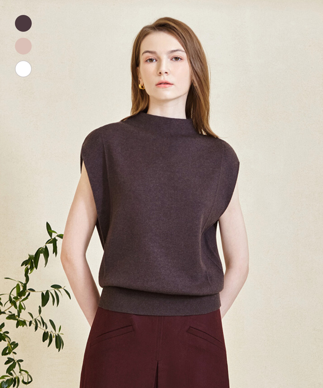[1+1+1]올리브그린 모크넥 커버 니트 베스트 3종 세트