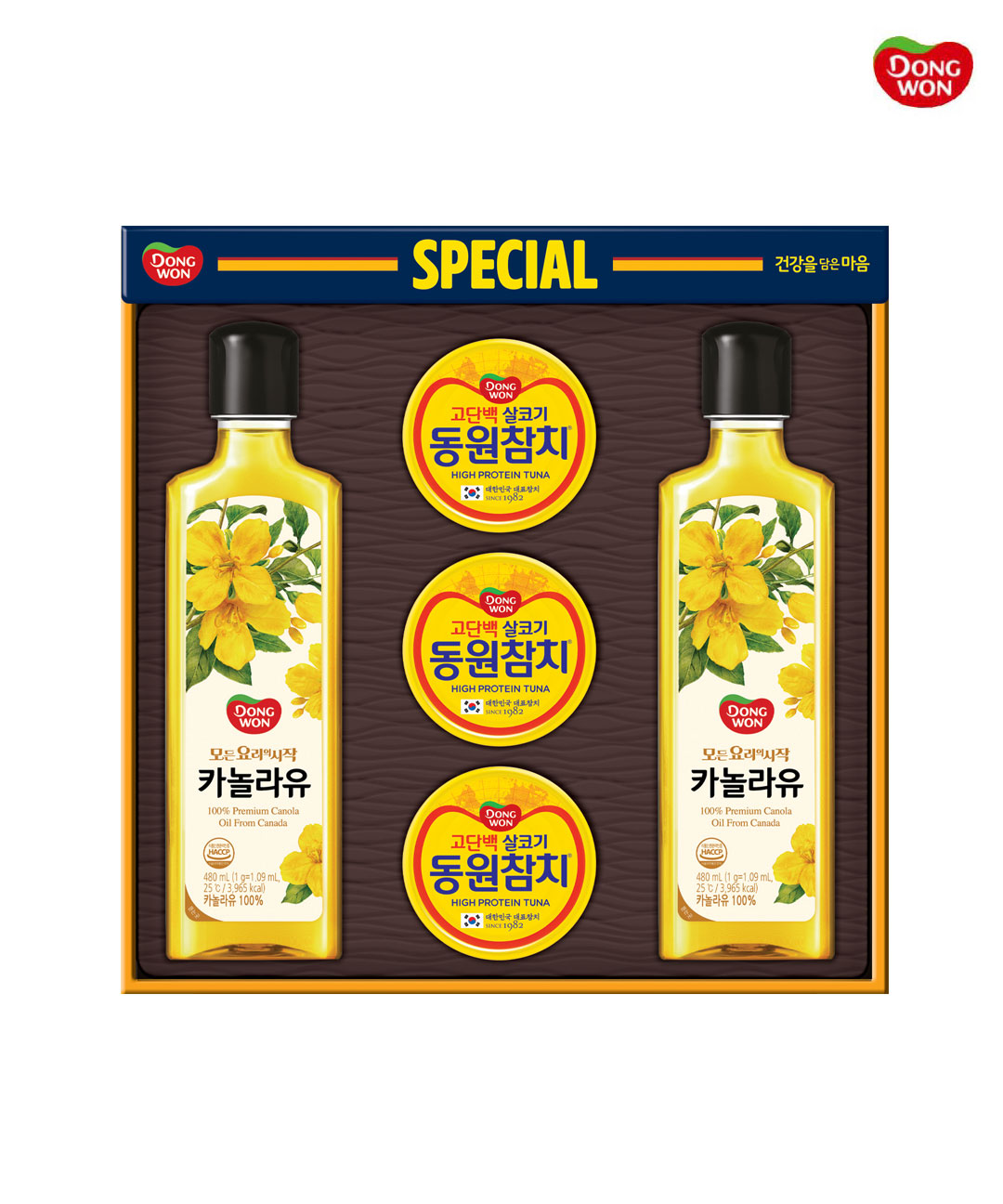 [26설/동원선물세트] 스페셜 7호 (라이트스탠다드 90g 3캔 + 카놀라유 480ml 2병)