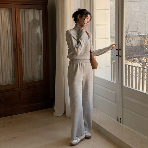 [프롬리리컬] [울함유] (7colors/파인울/니트&팬츠set♥) 펜터스 파인울 폴라 니트 팬츠 투피스 세트 st3017