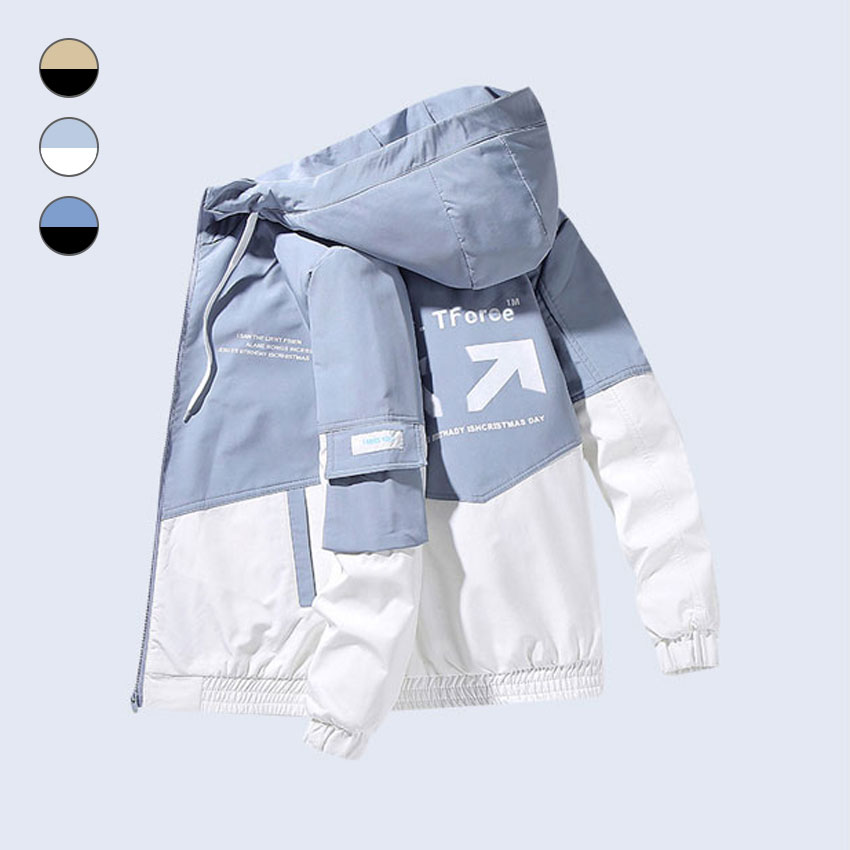 캐주얼 벨크로 포켓 바람막이 후드집업
