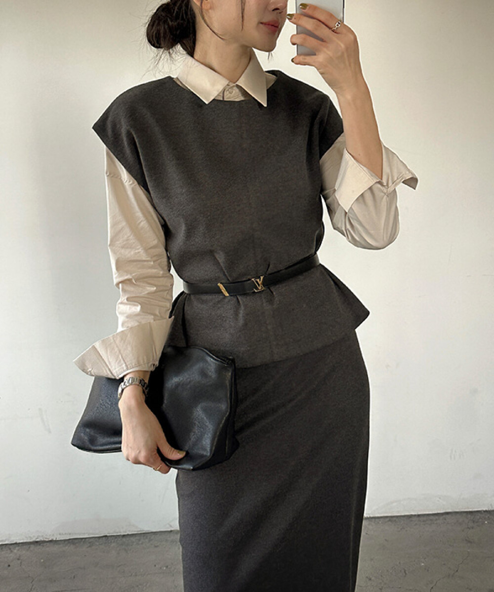 [더클립] 스토리 모직 기모 베스트 기모 롱스커트 셋업