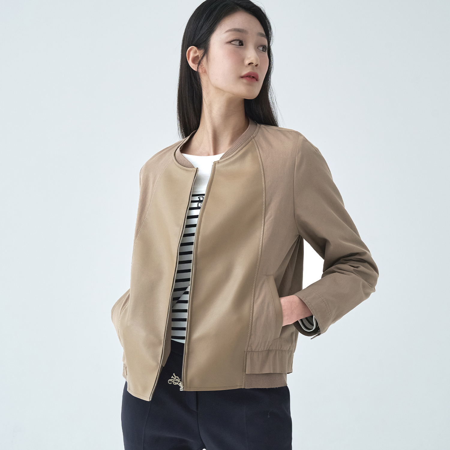 (2컬러) 레더패치 봄버형 코트 LCCAO224
