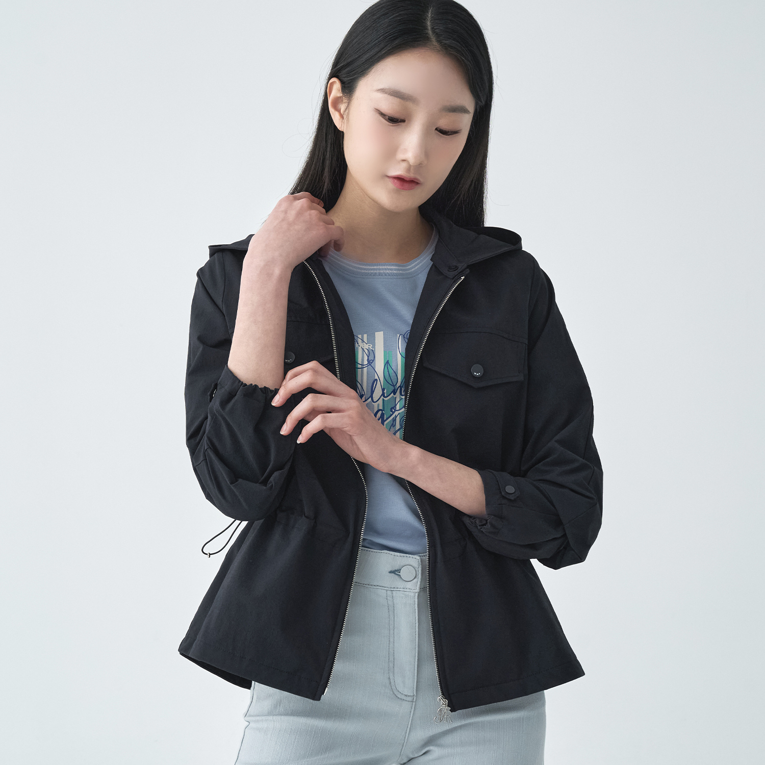(2컬러) 스판 후드 허리스트링 숏 점퍼 LSJPO251