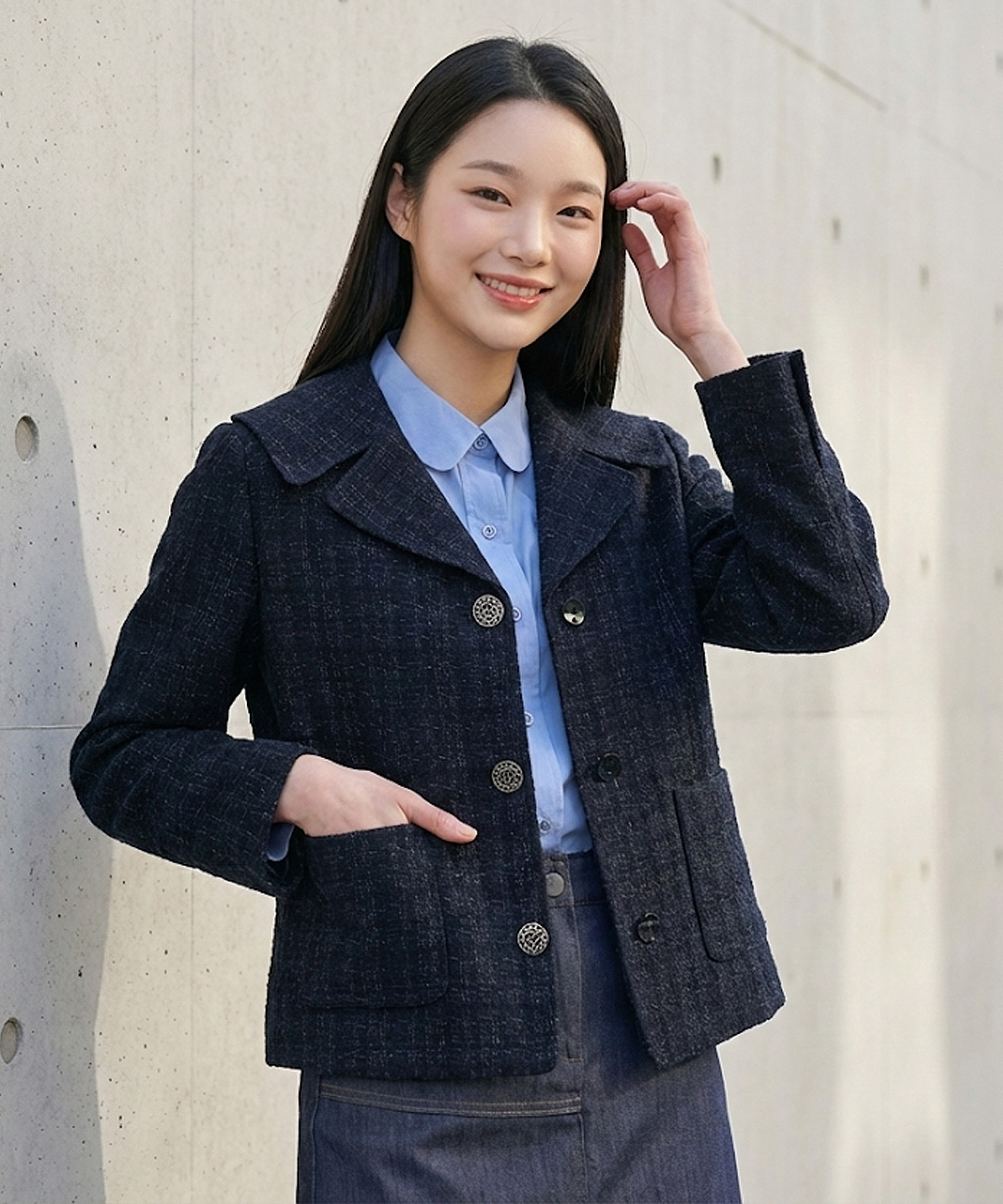피어로즈 트위드 빅카라 자켓 LFJKO294_DN