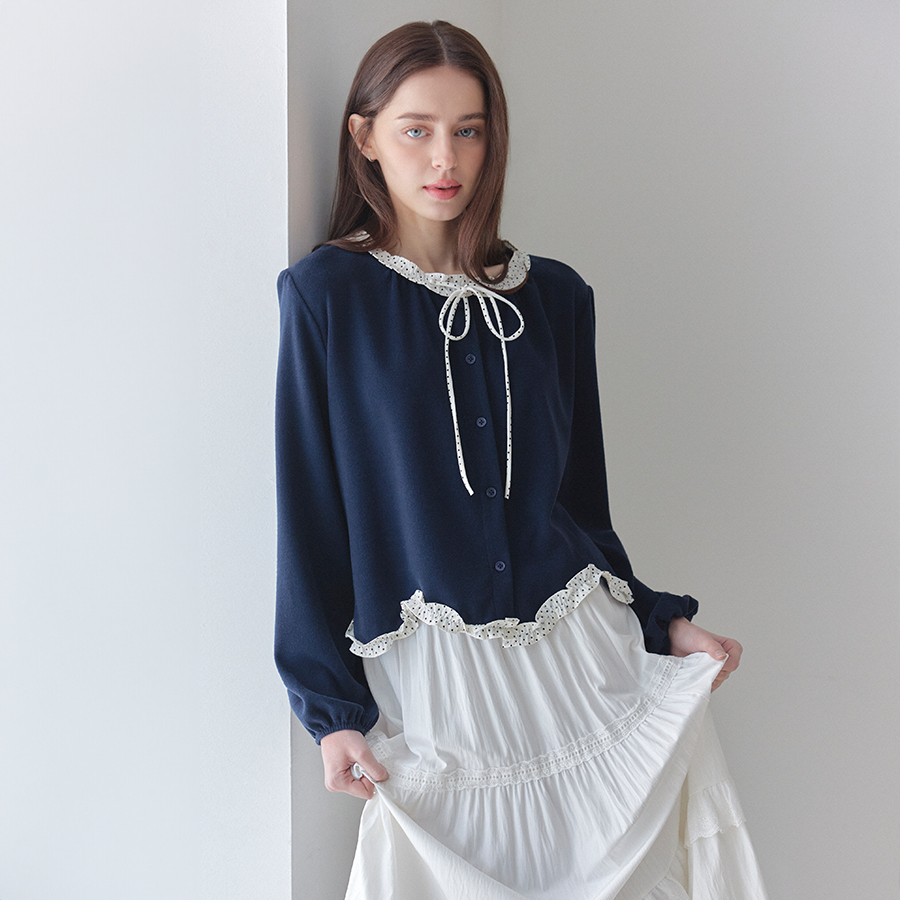 [26 신상] 도트 트리밍 리본 블라우스 (TMBBA2402)