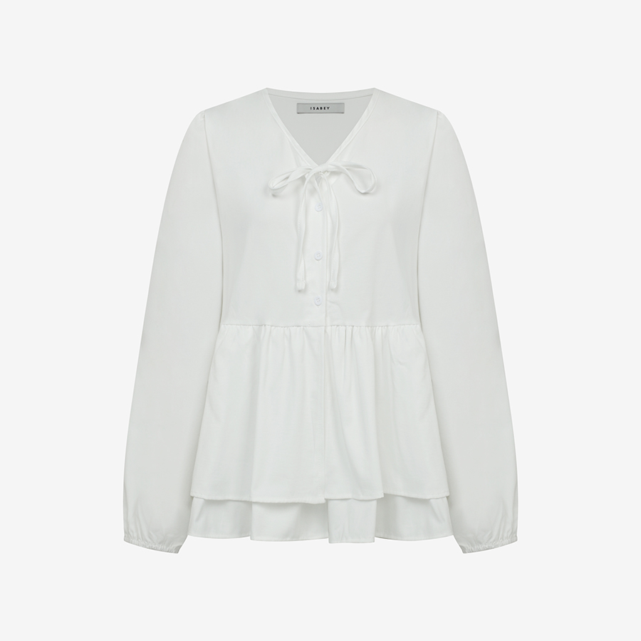 [26 신상] 이중 셔링 리본 브이넥 블라우스 (VMBAB2404)