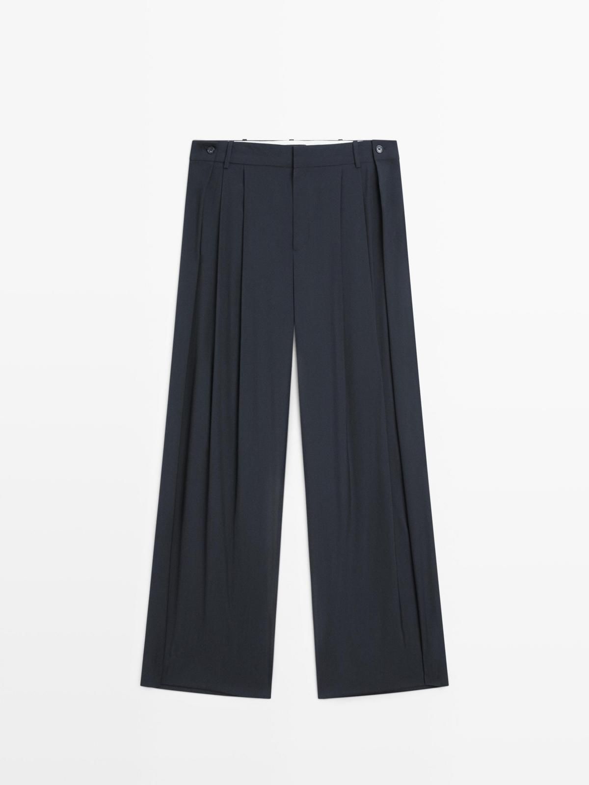 마시모두띠 플리츠 울 혼방 와이드 팬츠 5013/674 NAVY BLUE