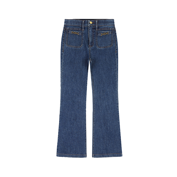 여성) 오비안밴드 금속장식 아웃포켓 바이오스톤워싱 긴기장 슬림 NE(H)-MB AO3DNE559-MB