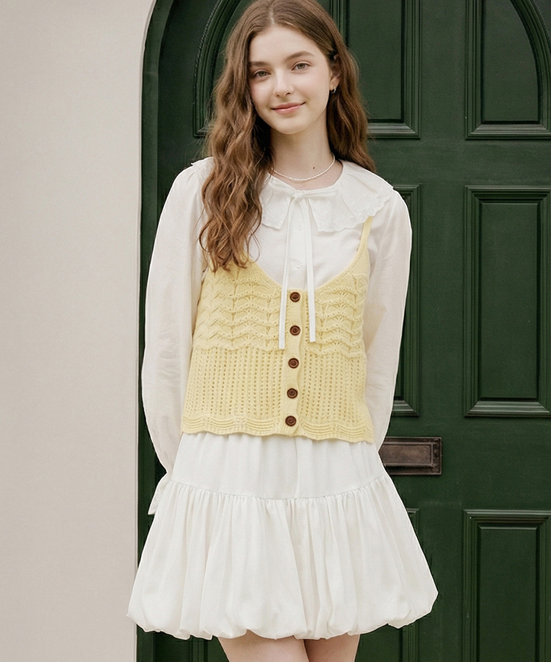 [블루레이스] [2SET]프릴 블라우스+조끼_B6S1BL5011