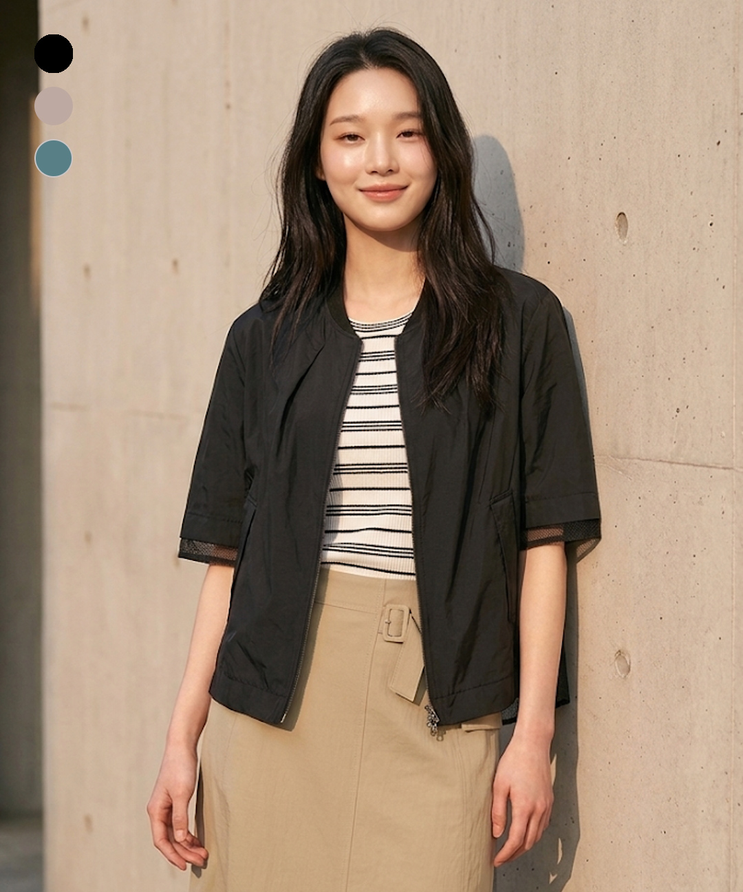 [봄시즌오프] (3컬러) 리사이클 메쉬배색 집업 자켓 LCCAO421