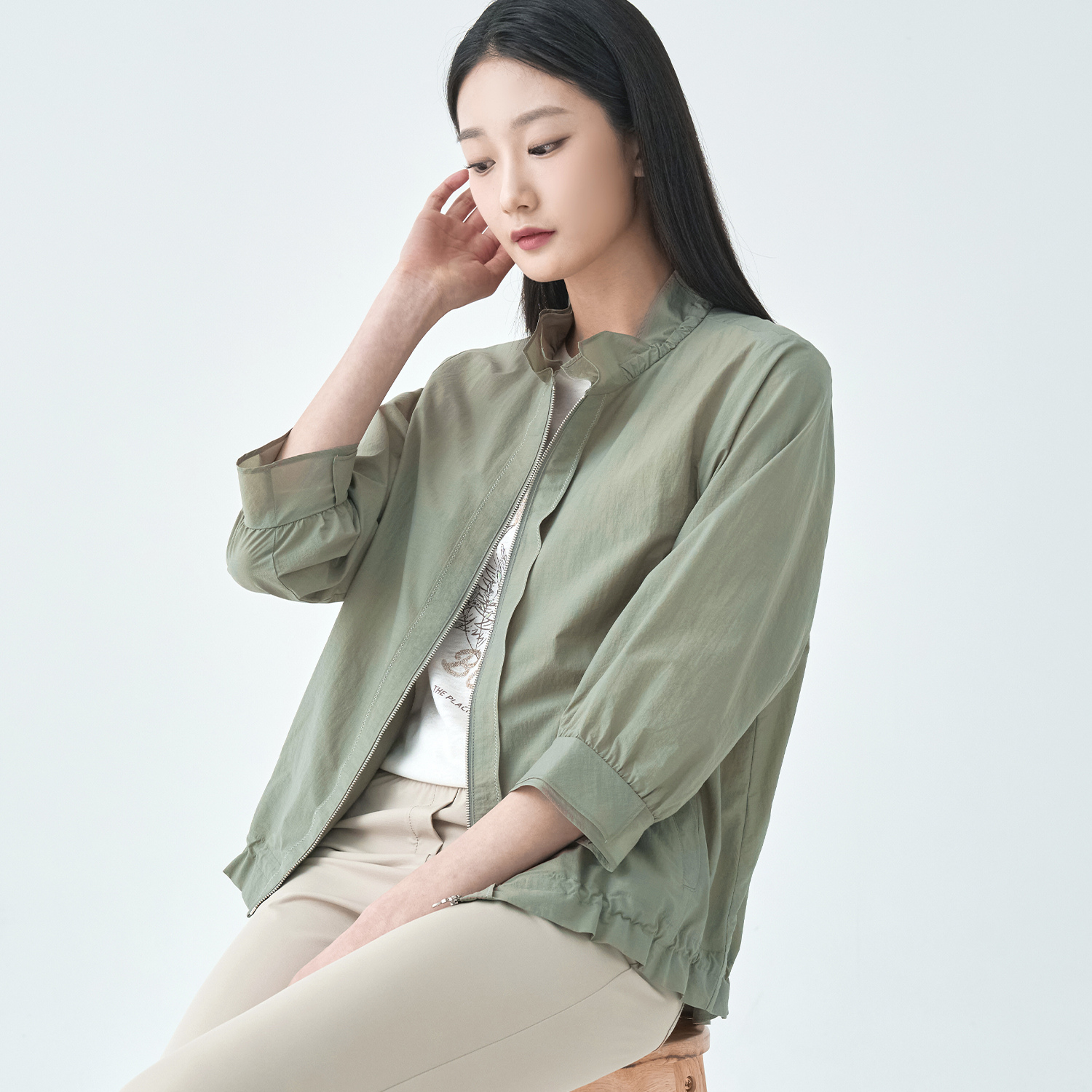 [봄시즌오프] (3컬러) 수피마코튼 셔링밴드넥 숏 코트 LCCAO422