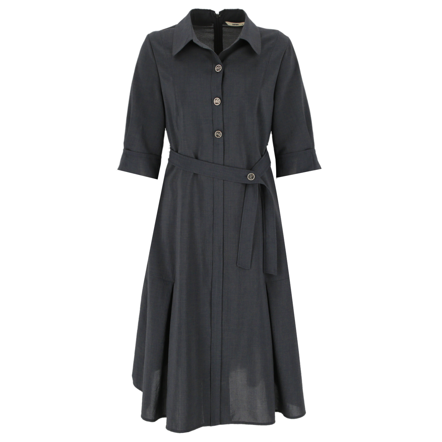 벨티드 셔츠카라 플레어 원피스 LFOPP401_GR