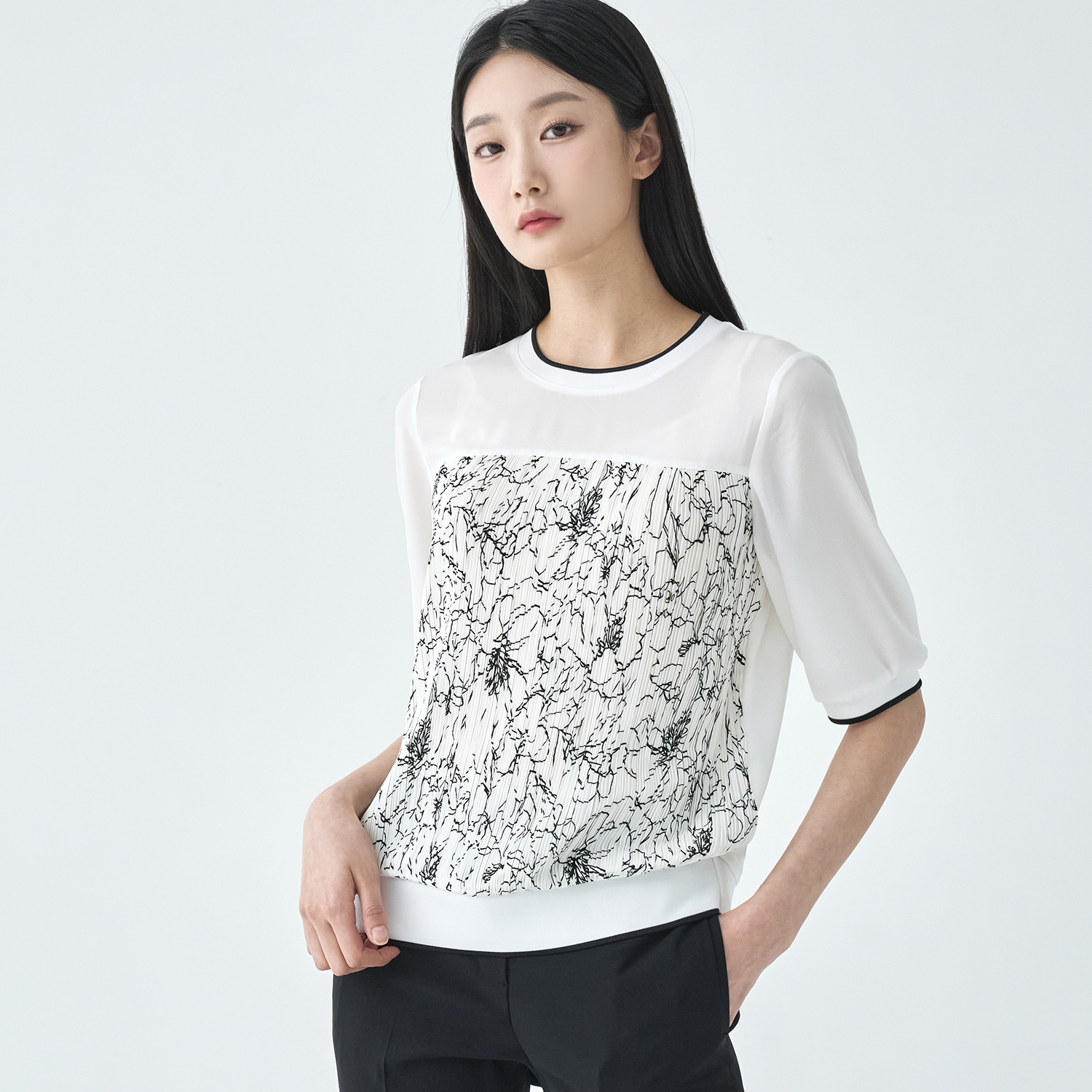 [여름오픈] (2컬러) 패턴 플리츠 5부 티 블라우스 LFWSO411
