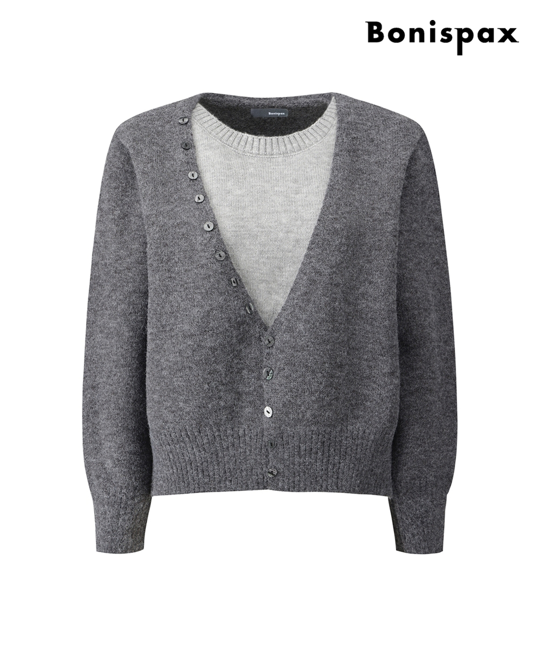 [보니스팍스] 레이어드 페이크 버튼 라운드넥 니트 (XPCKP018M0)