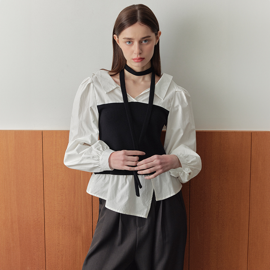 [26 신상] 니트 배색 레이어드 셔츠 & 머플러 SET (TMBAC2417)