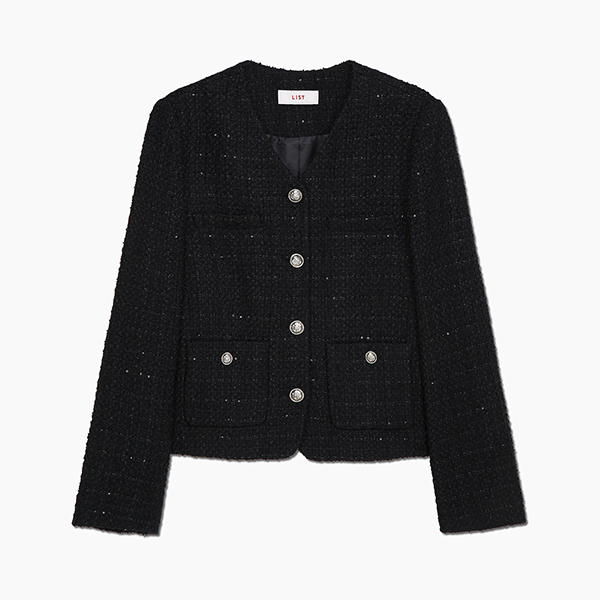 울 트위드 브이넥 자켓_TWWJKQ52060_BK