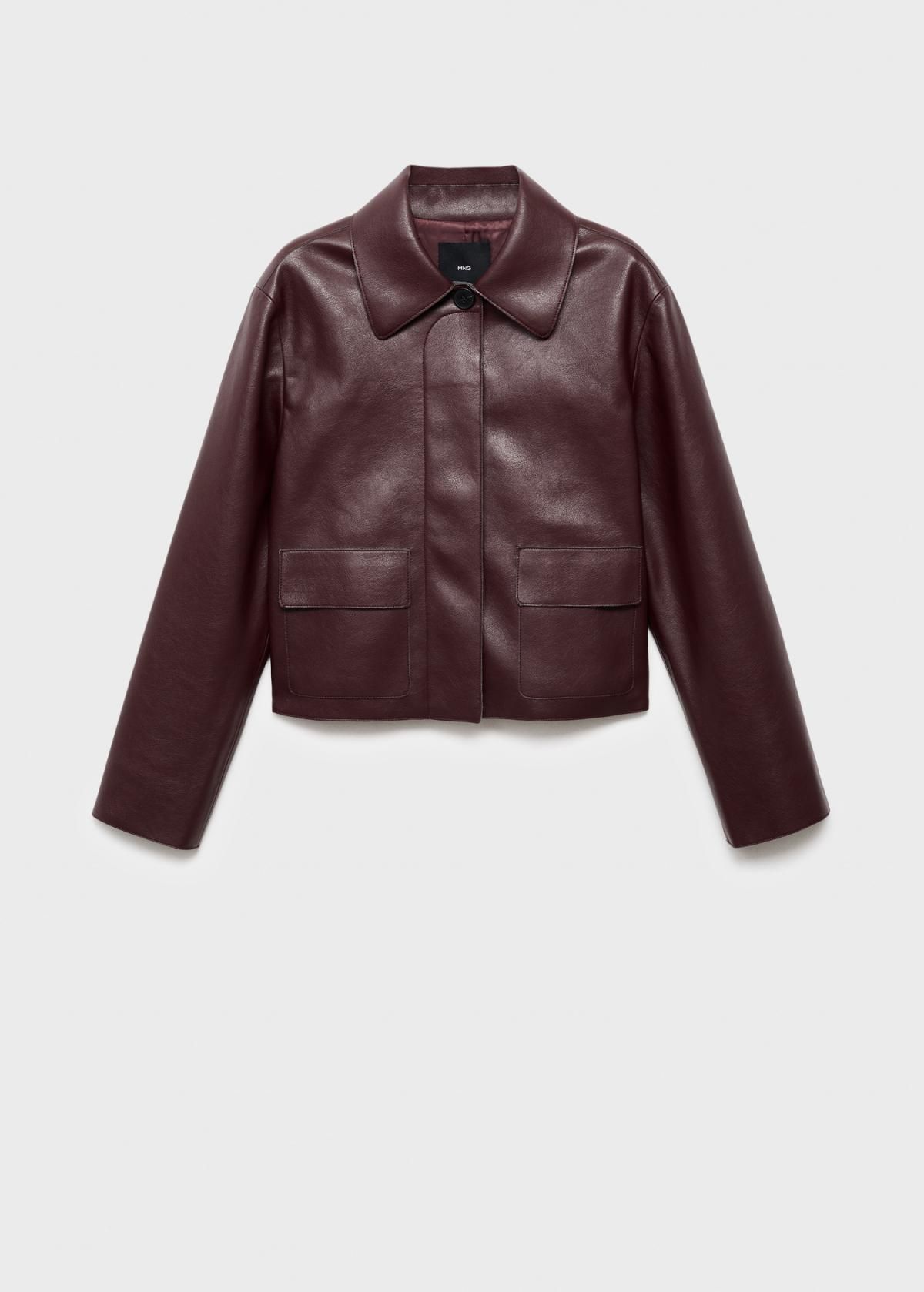 망고 테크니컬 레더 포켓 크롭 재킷 27064775_76 GRANATE