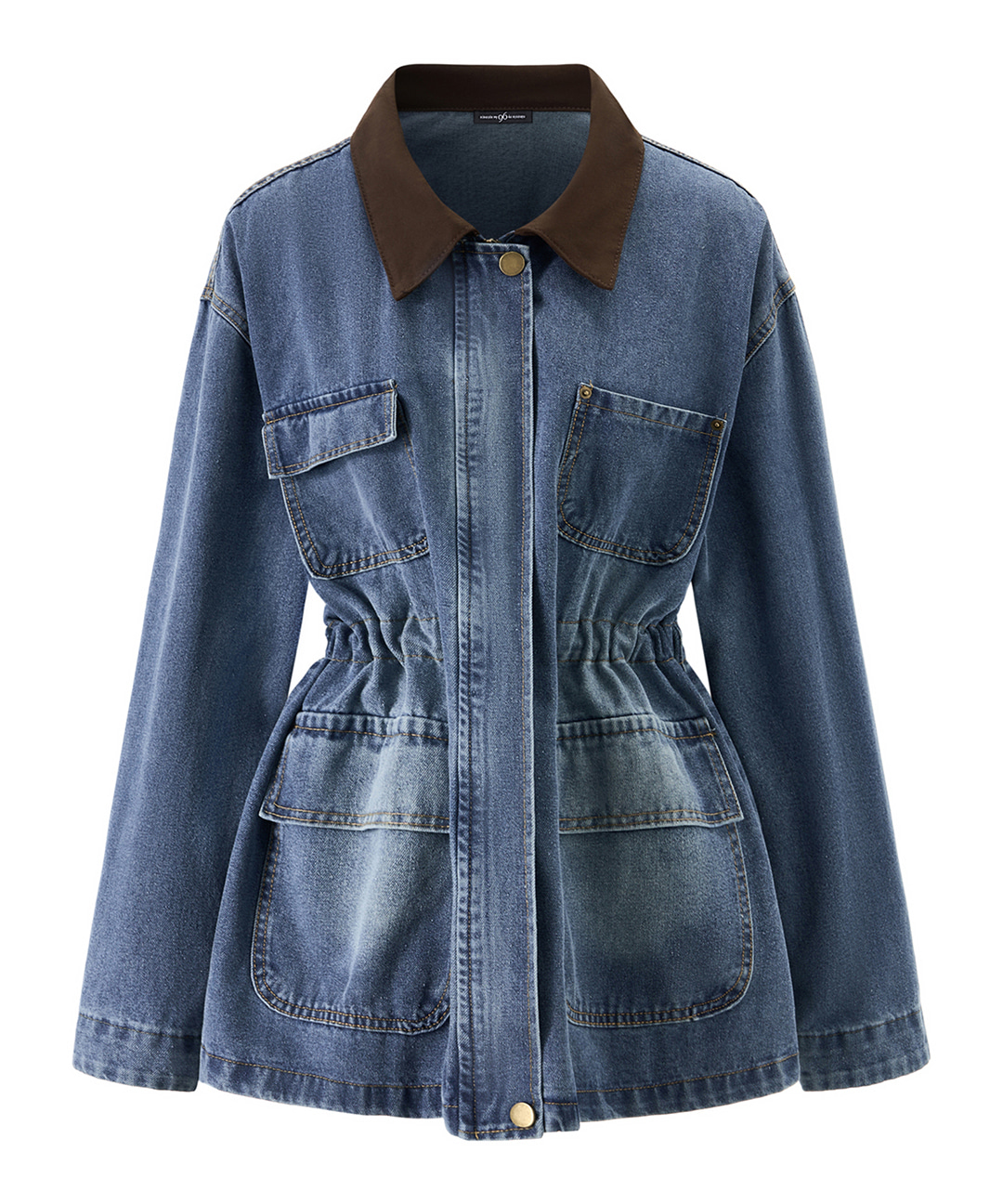 데님 카라 배색 허리 스트링 하프 자켓 (NQ1JK004L0)