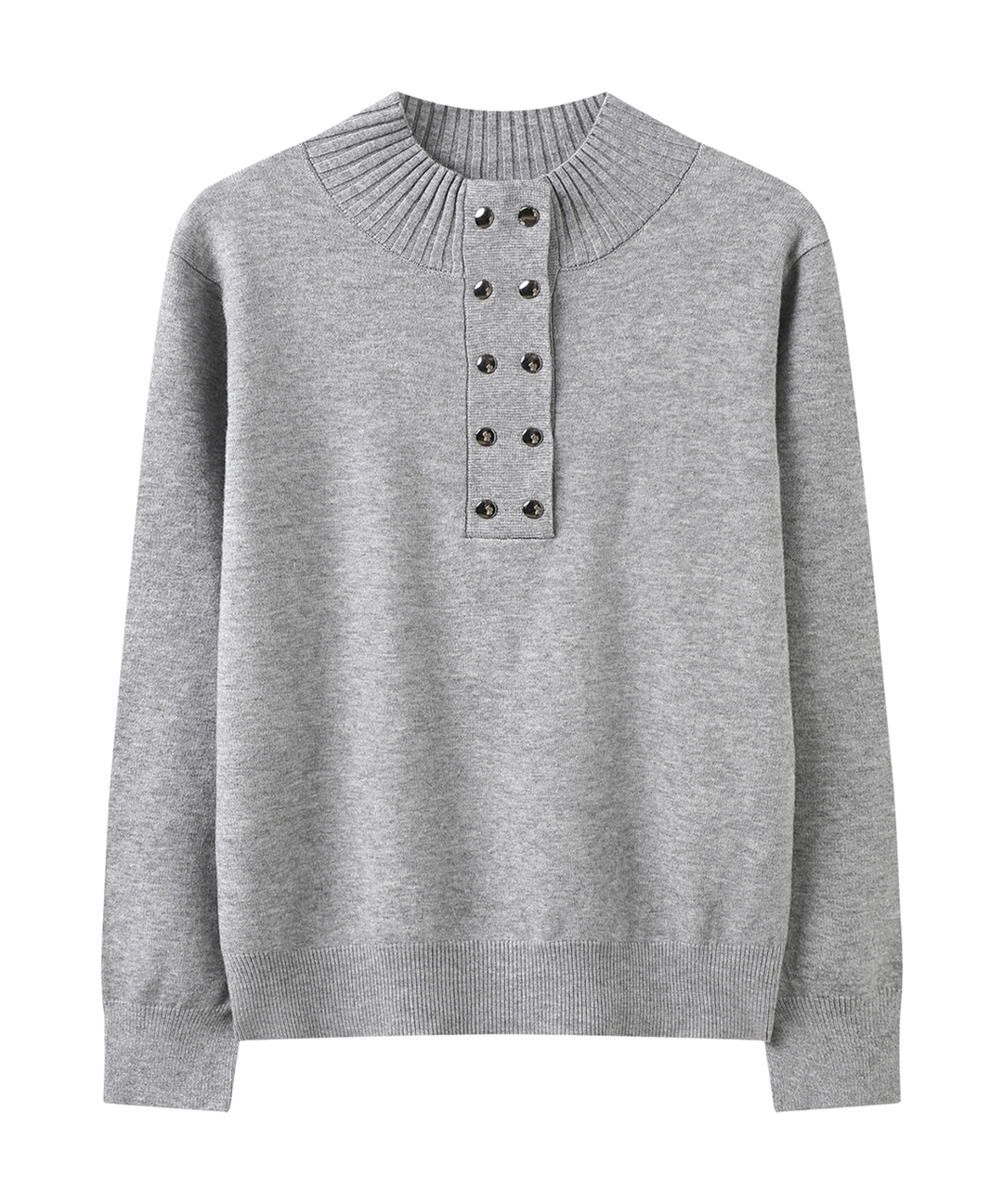 더블버튼 포인트 베이직 긴팔 니트 (XQ1KT001L0)