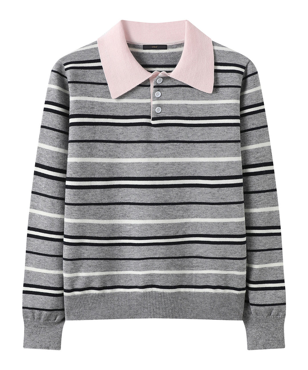 반버튼업 카라 배색 스트라이프 니트 (DQ1KT001A)