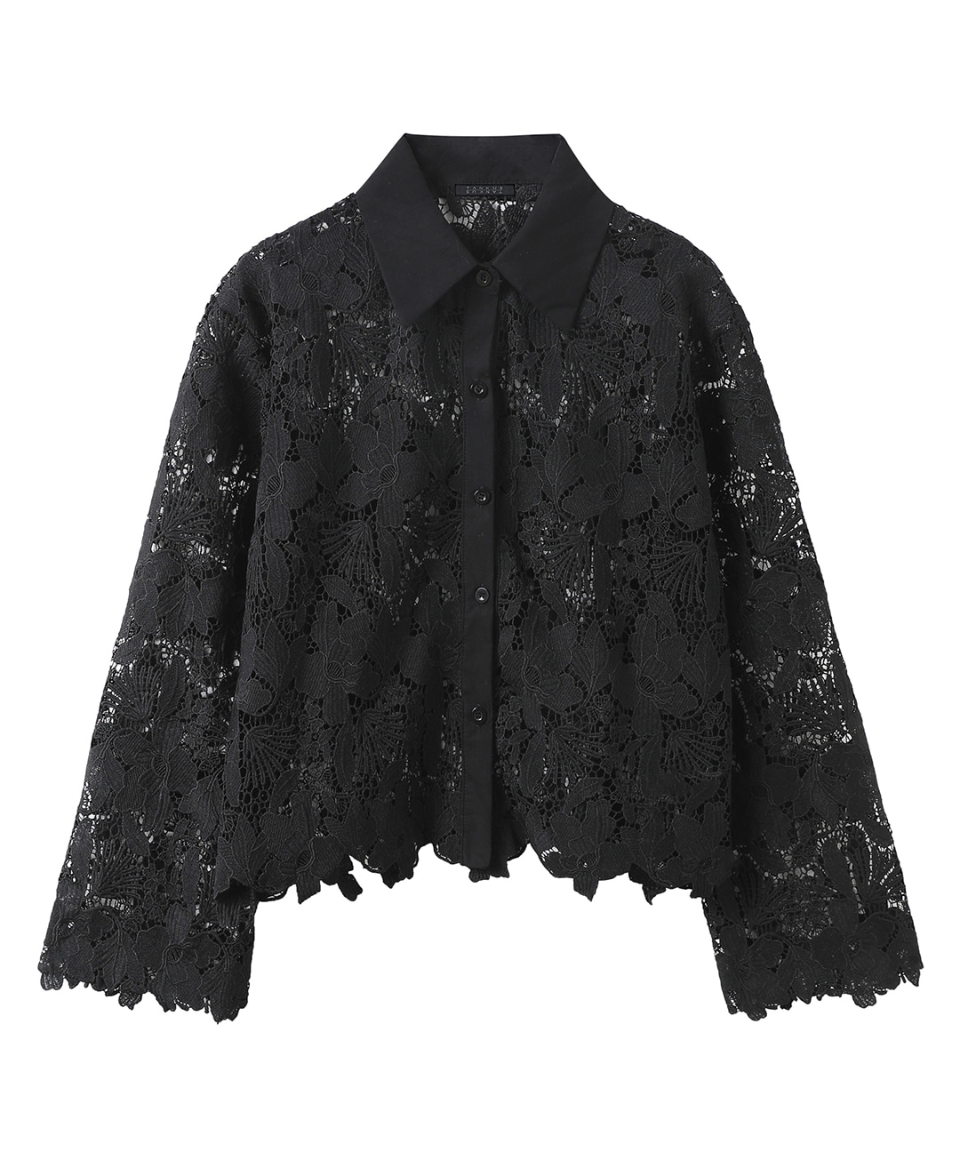 배색 카라 레이스 시스루 긴팔 블라우스 (TY1BL002L0)