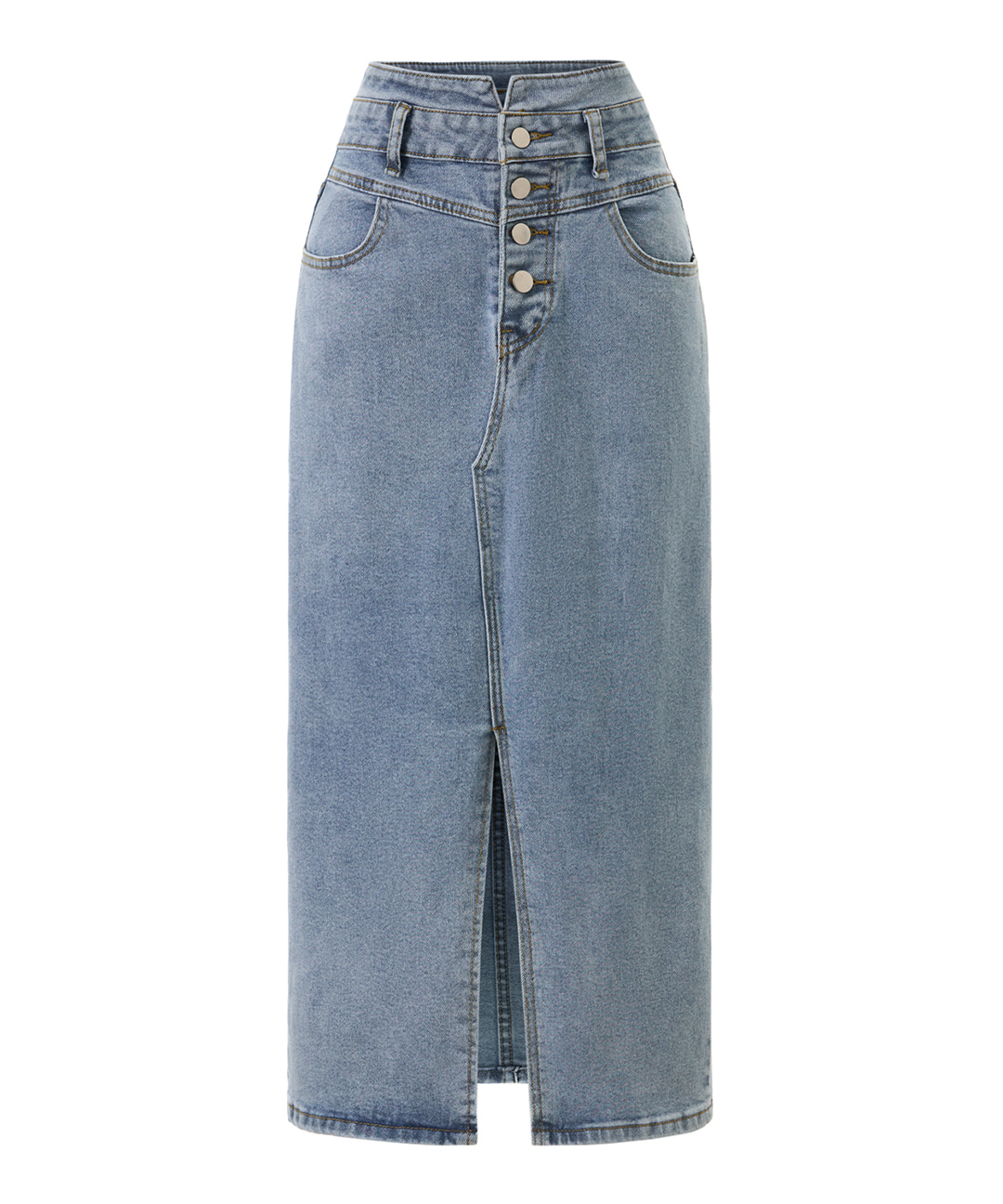 하이웨스트 버튼 데님 앞 트임 롱 스커트 (TY1SK003L0)
