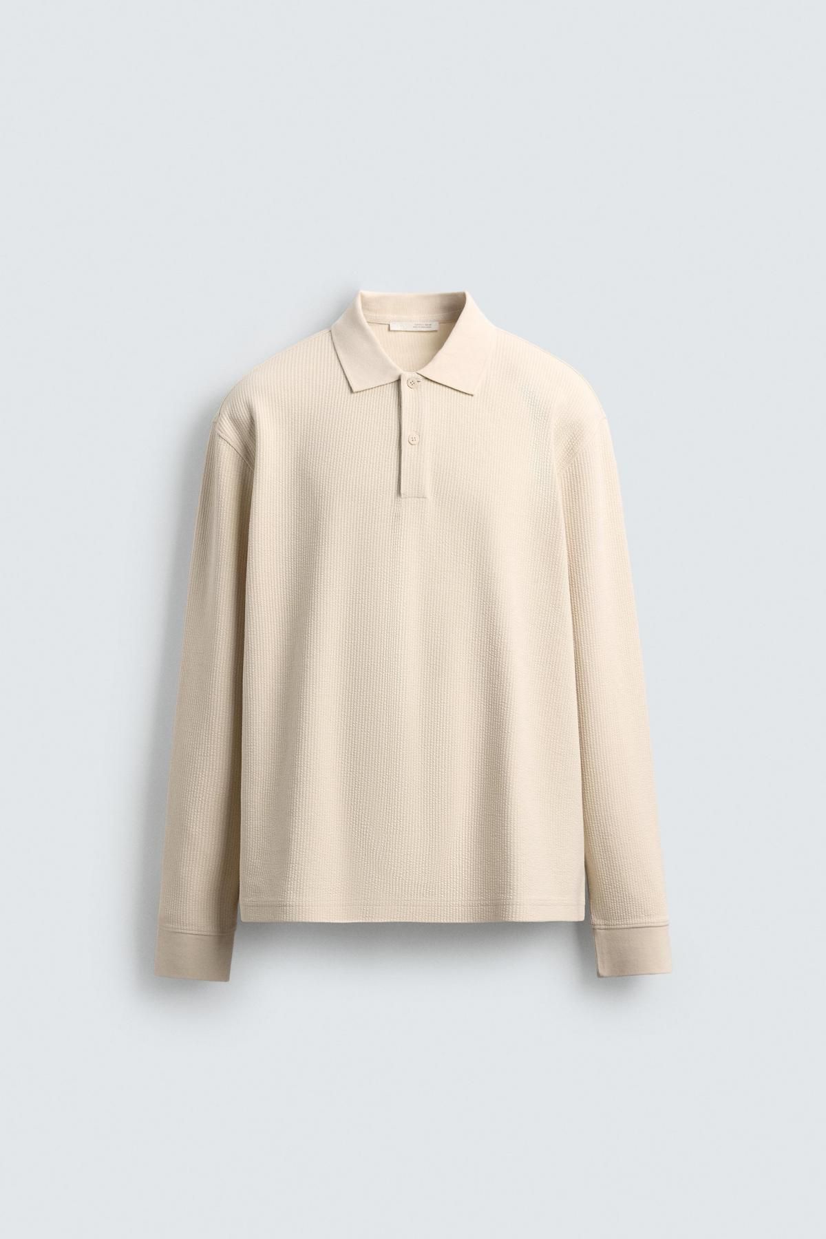자라 베이직 텍스처 긴팔 폴로 셔츠 4092/424/251 OYSTER-WHITE