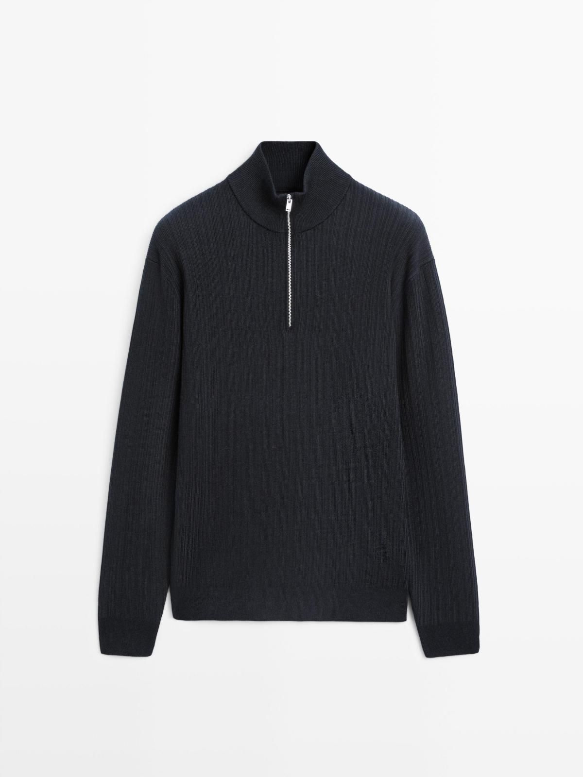마시모두띠 하프집업 코튼 니트 스웨터 1198/201 FADED NAVY