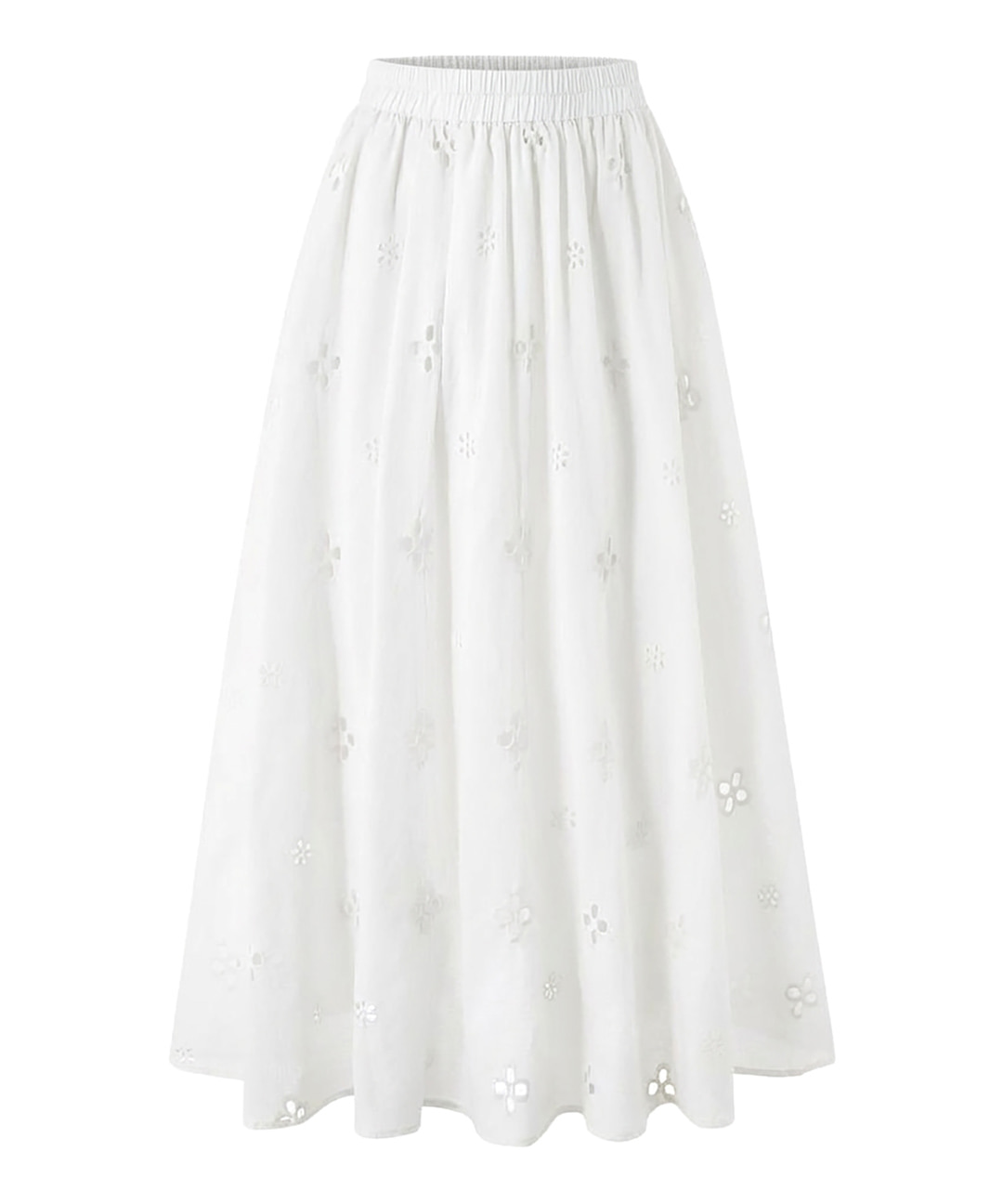 [미니멈 에브리데이]로맨틱 펀칭 아일렛 플레어 롱 스커트 (EC1WH001D)