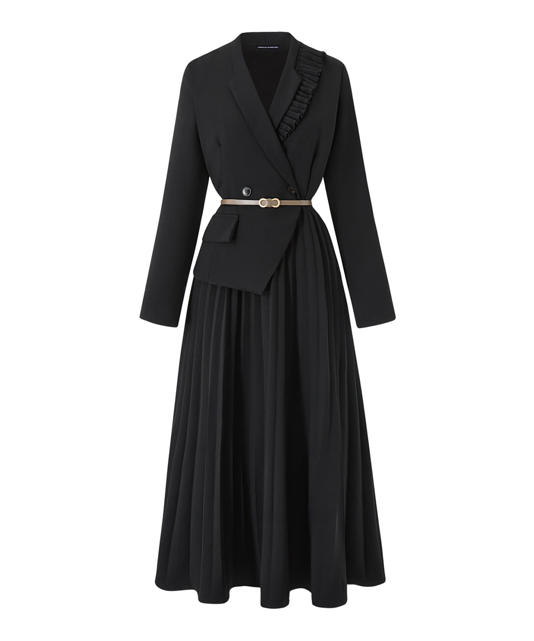 [하객룩 BEST] [미니멈 에브리데이]페미닌 라인 자켓 레이어드 플리츠 롱 원피스 (EC1OW001D)