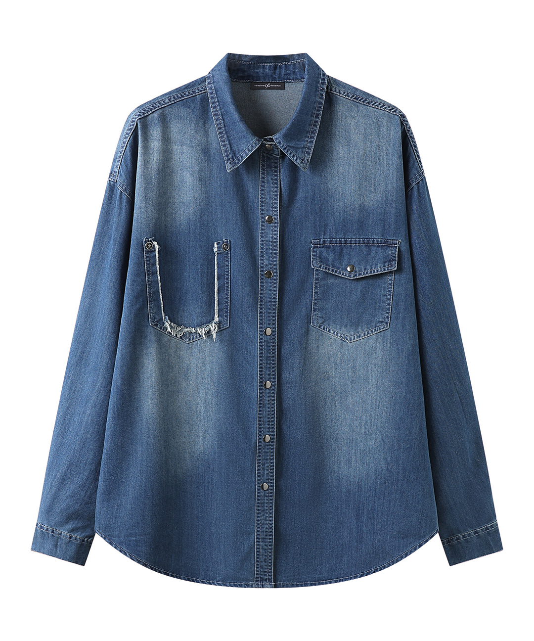빈티지 포켓 데님 워싱 카라넥 긴팔 셔츠 (NQ1BA004L0)