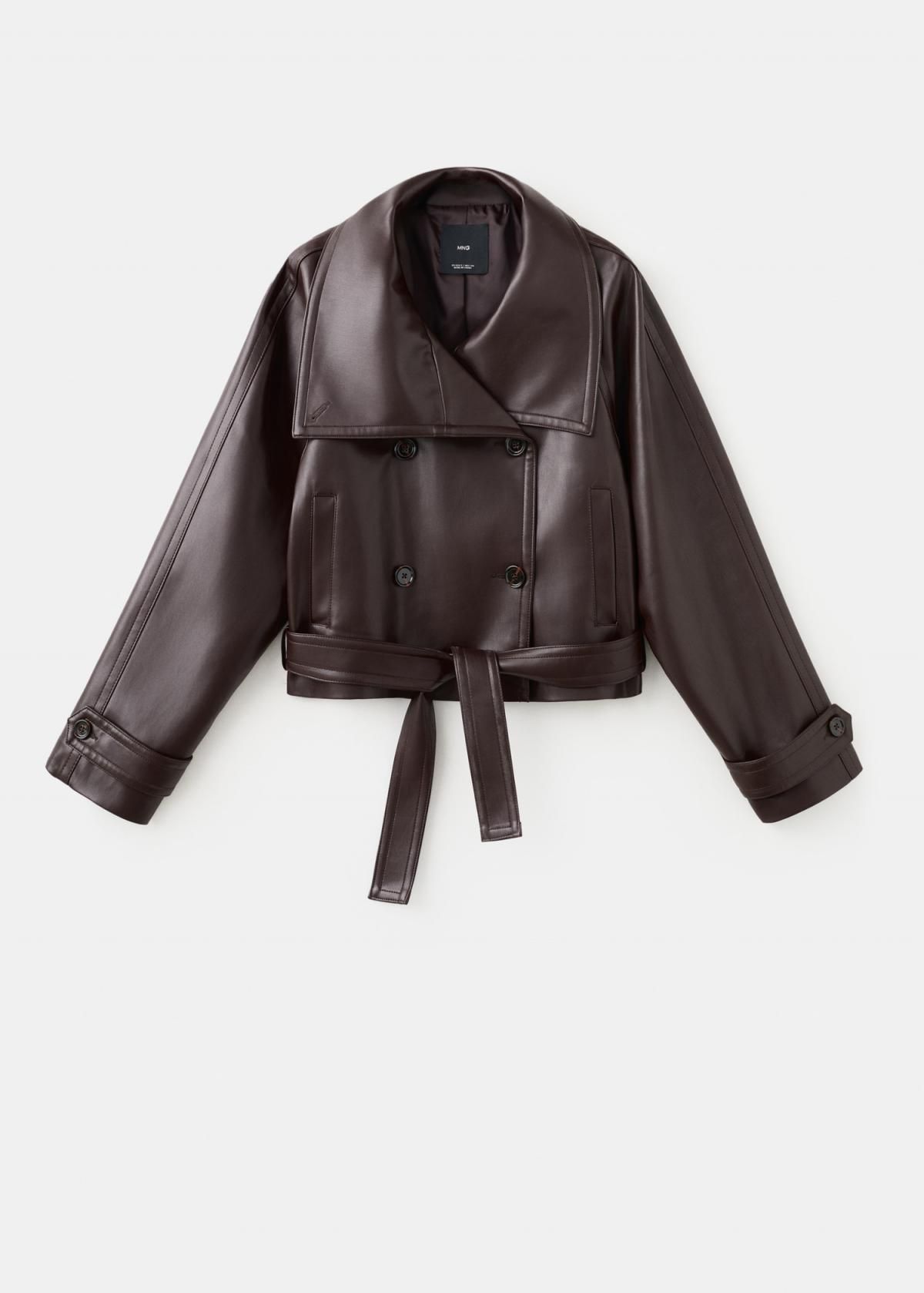 망고 맥시 칼라 레더 벨트 크롭 재킷 27074433_76 GRANATE