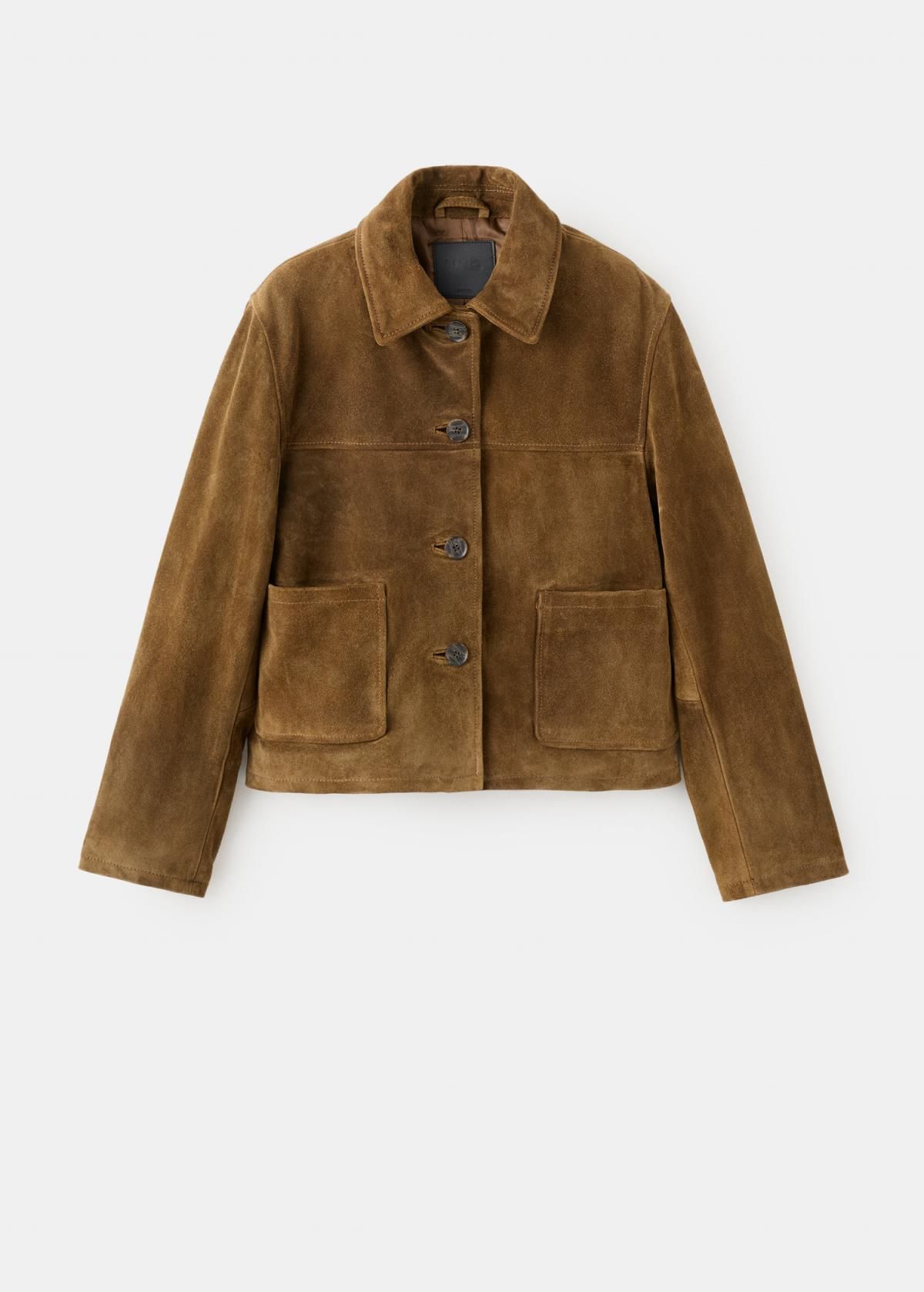 망고 스웨이드 레더 버튼 크롭 재킷 27024045_31 MARRON TABACO