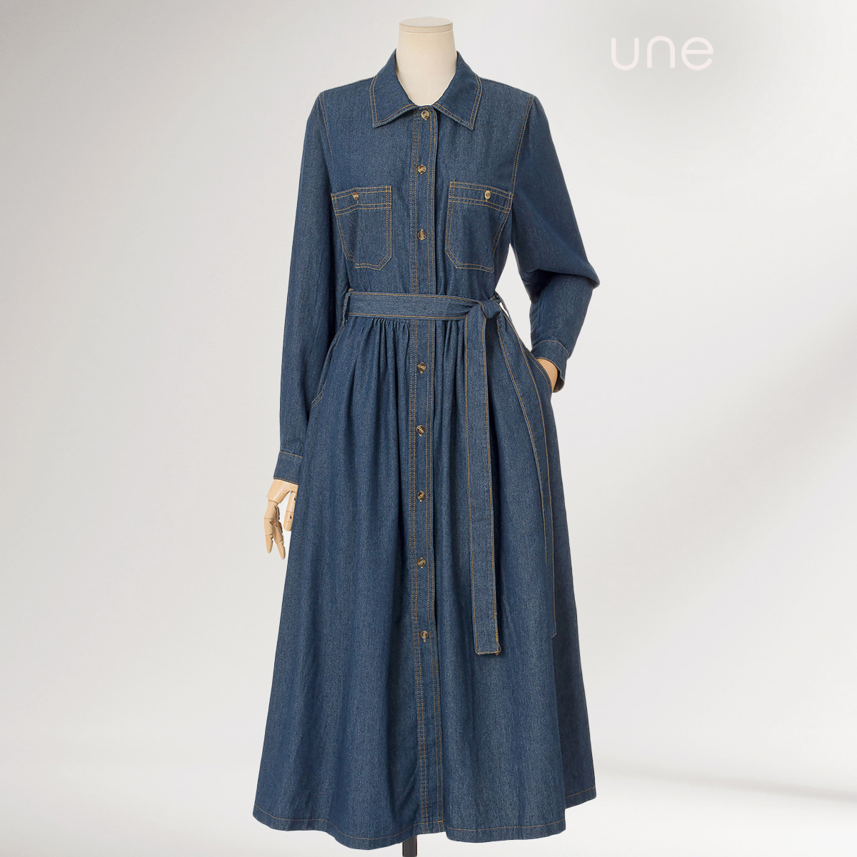윈(une) [벨트SET]스티치디테일 데님원피스