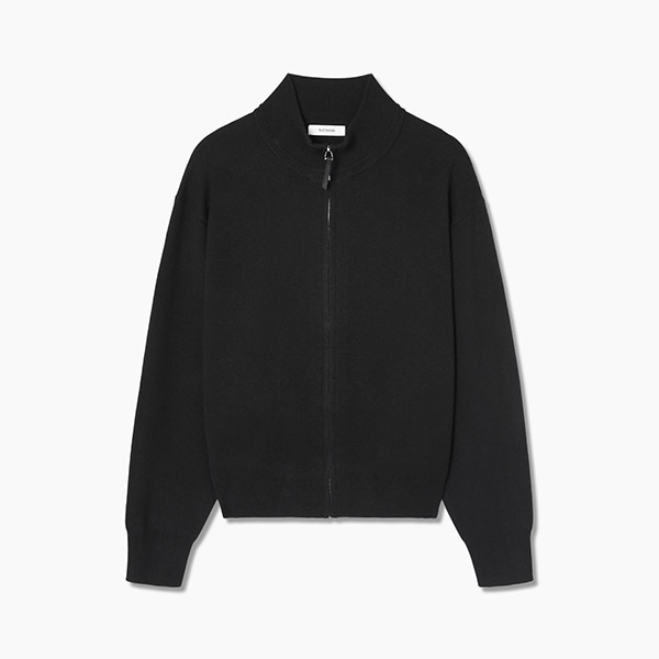 하프넥 니트 집업 가디건_SSKCDQ11030_BK